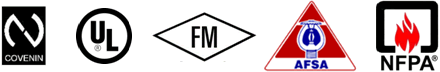 DISEÑOS DE ACUERDO CON LA NORMA N.F.P.A. (NATIONAL FIRE PROTECTION ASSOCIATION) Y NORMAS COVENIN (COMISION VENEZOLANA DE NORMAS INDUSTRIALES). LOS EQUIPOS INSTALADOS POR NUESTRA EMPRESA SON LISTADOS UL (UNDERWRITERS LABORATORIES) Y APROBADOS FM (FACTORY MUTUAL).